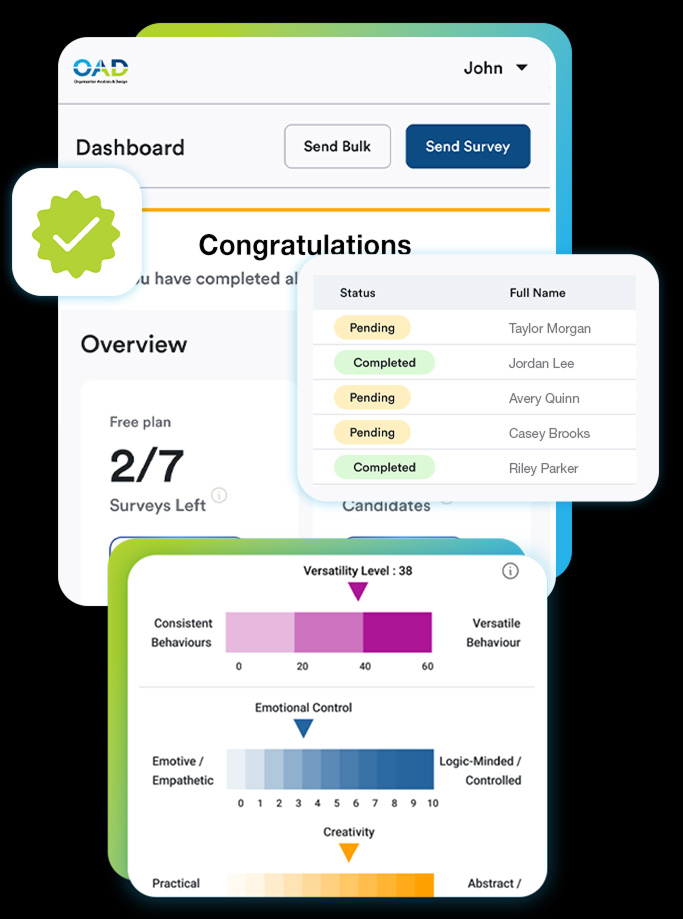 Not at all. Take Warren Buffett’s classic “tripod”—integrity, intelligence, and energy. Those qualities are just as relevant in a fifty-person business as they are in a Fortune 500. The point is, with tools like OAD, you can bring that rigor within reach, and do so affordably. OAD’s platform, for instance, brings decades of behavioral science to everyday hiring, helping companies of any size get the kind of predictive outcomes the tech giants built from scratch.